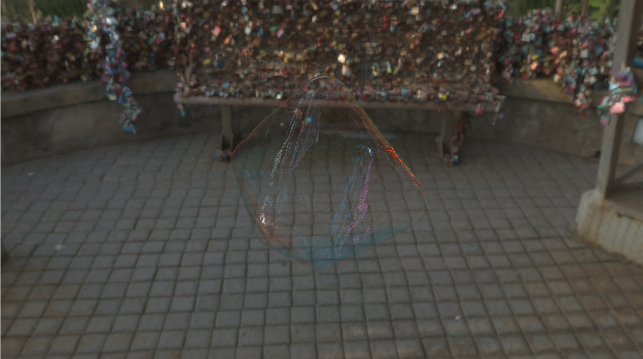 Additionally, varying the thickness of the film is also another way to get a lot more realism: incorporating the effect of gravity onto film thickness and the turbulent flow that occurs on the surface of the bubble can add an extra layer of depth to the visual realism.