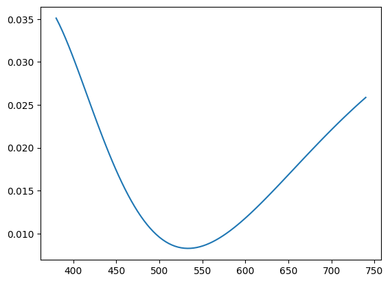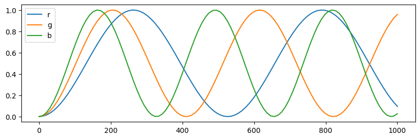 $\eta$ parameters as earlier plotInterestingly, the current BSDF implementation is general enough to get transmittance and reflectance values at arbitrary $\lambda$, $d$, and $\eta$ values, leaving room for more complex rendering techniques, where the thickness of the surface is varying (possibly informed by underlying bubble simulation using Lagrangian advection of thickness like [Ishida 2020] or an SPH solver approach like MELP), or sampling a spectrum of wavelengths instead of just a constant wavelength for each color channel, and finally having different type of thin-film surfaces (by varying the $\eta$ value).